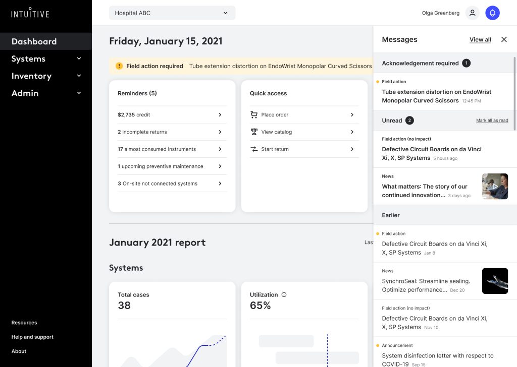 Intuitive products are cutting edge when it comes to robotic surgery. However, their design practice lags behind industry standards due to the lopsided and unconventional nature of the products not allowing for a robust set up. I consulted with the company as a design ops expert and helped turn around the product design suite by instating a scalable design system powered by accessibility, configurable component library and solid deliverables for the product suite and apps.