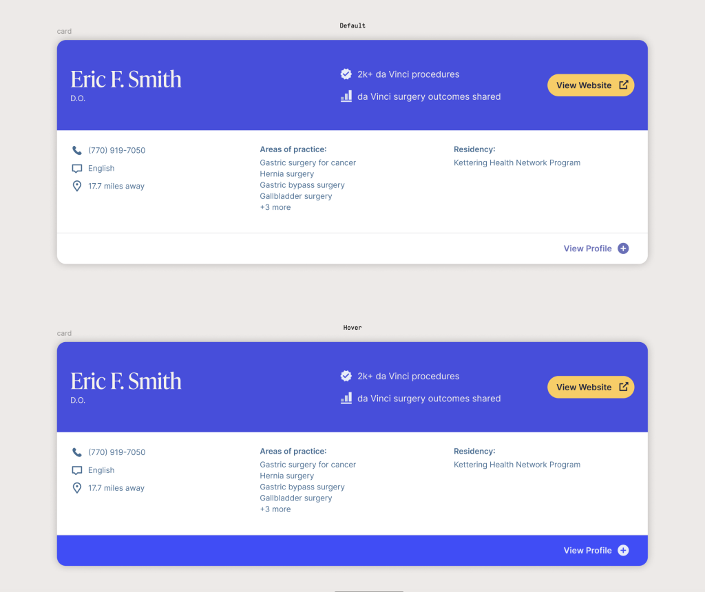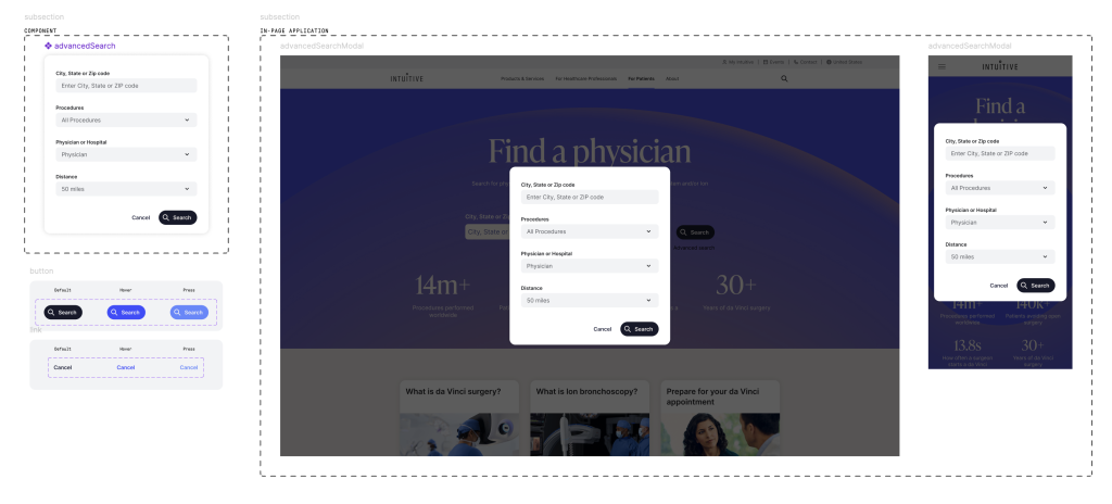 I worked closely with product and engineering leadership at Intuitive to implement a unified design system across Intuitive’s customer portals and web app offerings, creating an entirely new digital space designed to attract and engage patients directly with robotic surgery. This work required balancing clinical credibility with approachability—translating complex surgical technology into clear, human-centered experiences that built trust with patients while remaining compliant and technically robust. By aligning design system foundations with product strategy, we enabled faster experimentation, clearer storytelling, and a consistent brand presence across patient-facing education, discovery, and engagement journeys.