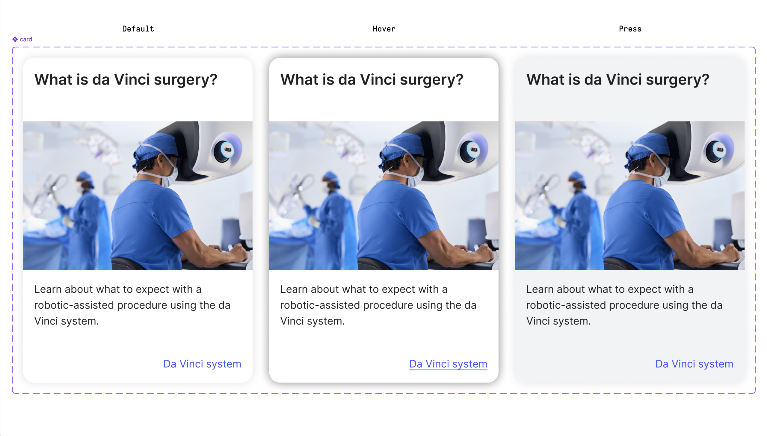 I worked closely with product and engineering leadership at Intuitive to implement a unified design system across Intuitiveās customer portals and web app offerings, creating an entirely new digital space designed to attract and engage patients directly with robotic surgery. This work required balancing clinical credibility with approachabilityātranslating complex surgical technology into clear, human-centered experiences that built trust with patients while remaining compliant and technically robust. By aligning design system foundations with product strategy, we enabled faster experimentation, clearer storytelling, and a consistent brand presence across patient-facing education, discovery, and engagement journeys.